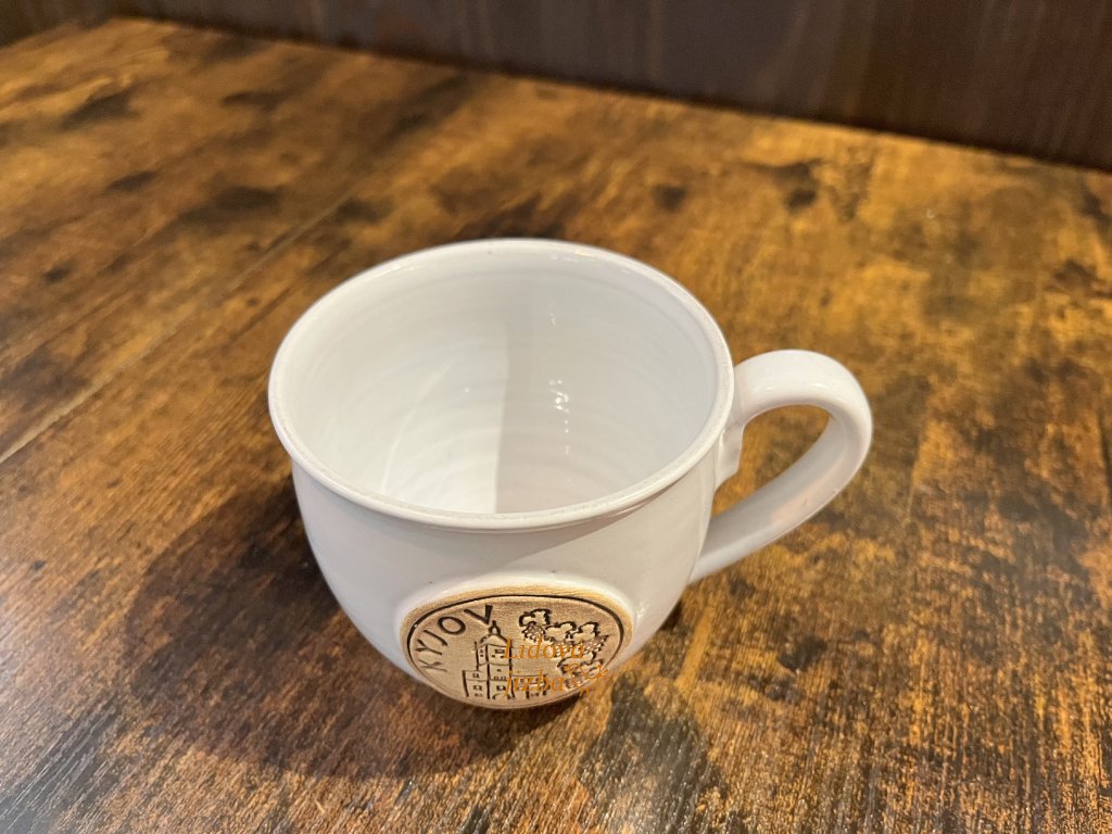 Keramický hrnek o rozměrech: šířka 10 cm (bez ucha), výška 9 cm.