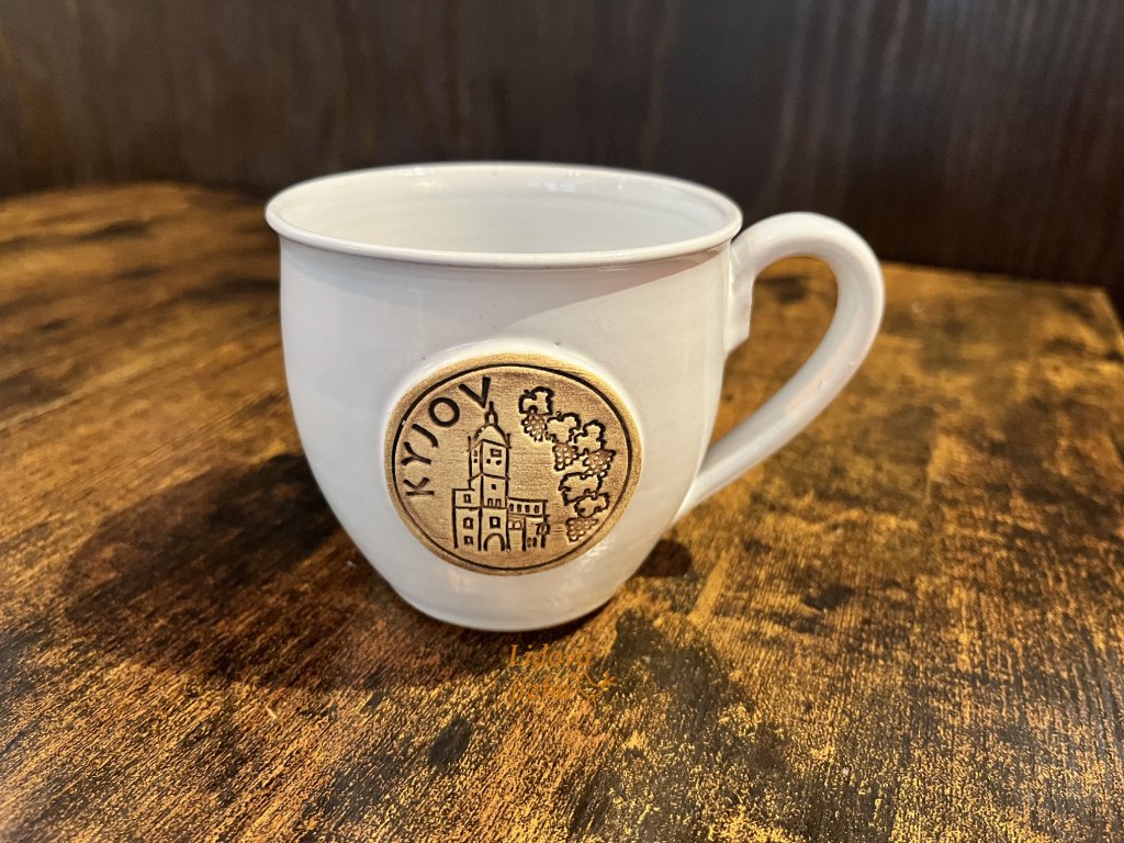 Upomínkový předmět odkazující na historické město Kyjov s vyobrazením dominanty města, jeho radnicí.