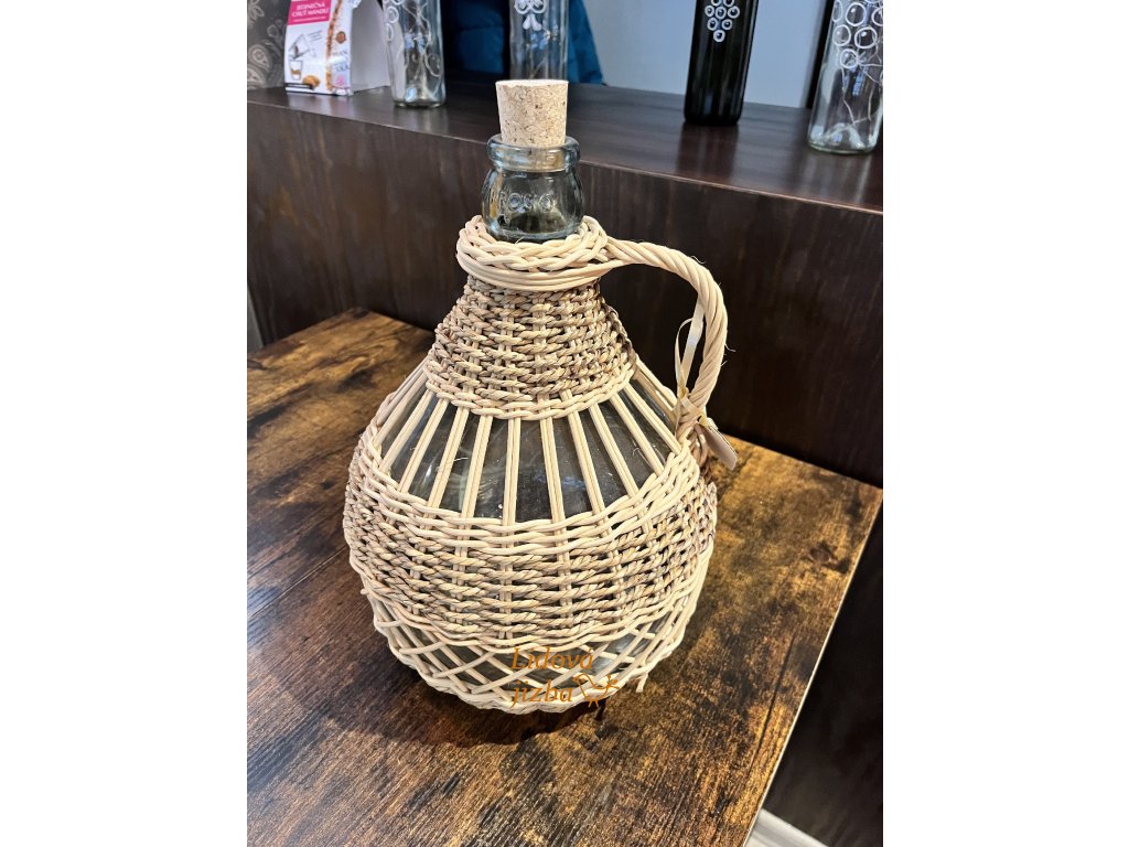 Ideální pro uchovávání vína či destilátů. Přírodní materiály dodávají láhvi jedinečný vzhled a hodí se do venkovského i moderního interiéru.
