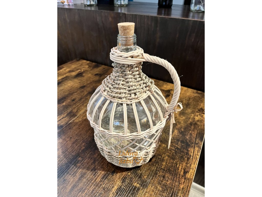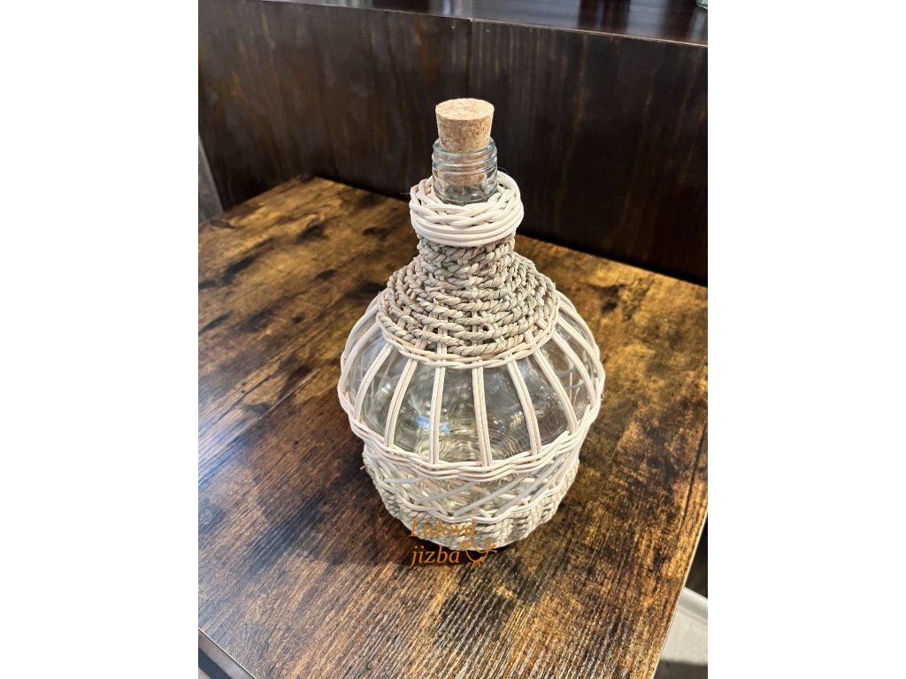 Ideální pro uchovávání vína či destilátů. Přírodní materiály dodávají láhvi jedinečný vzhled a hodí se do venkovského i moderního interiéru.