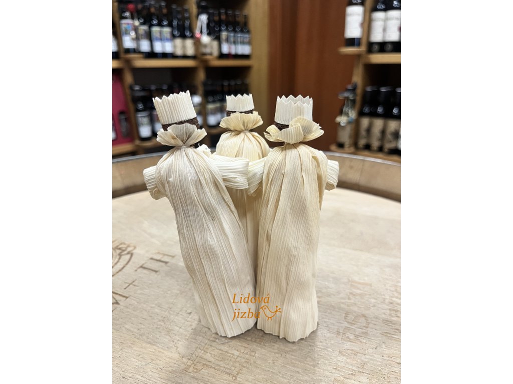 Tradiční výrobky z kukuřičných listů (šustí). Výška 14 cm. Postavičky vhodné pro dekoraci do vánočních betlémů či jako doplněk interiéru.